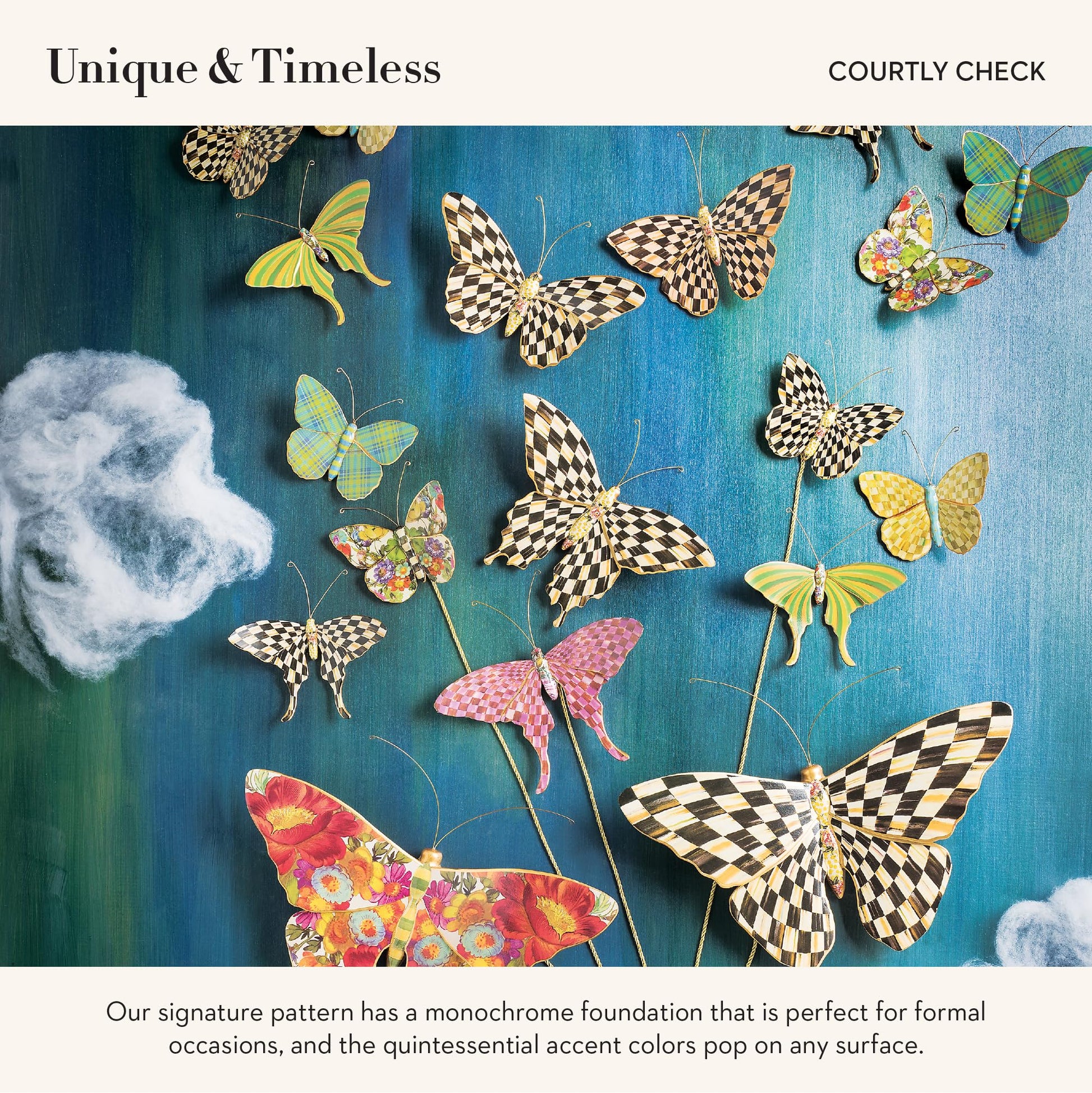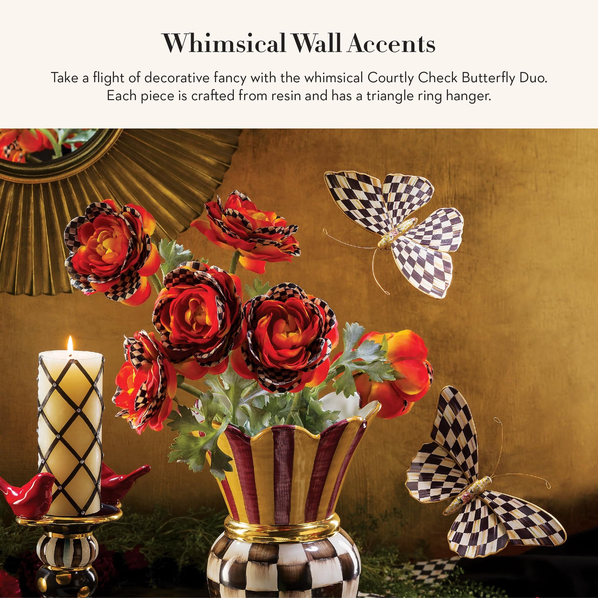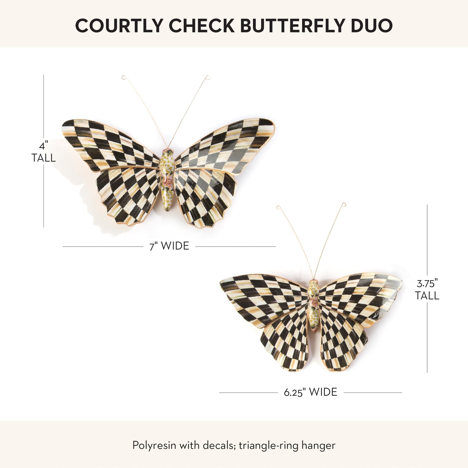 MACKENZIE-CHILDS Butterfly Duo, Hanging Butterfly Wall Decor, Black-and-White Courtly Check, Set of 2