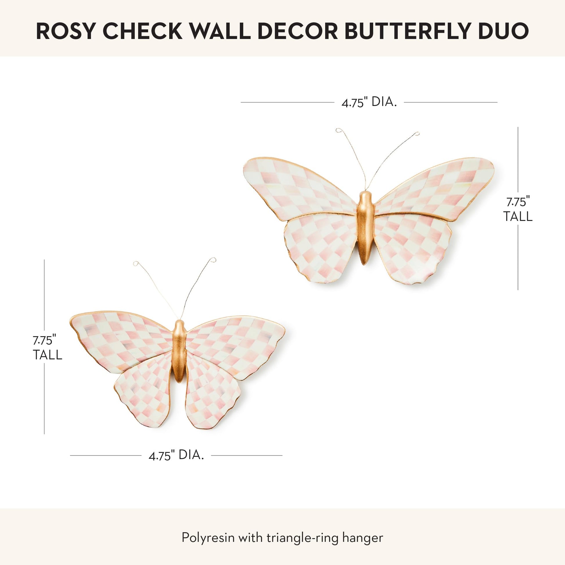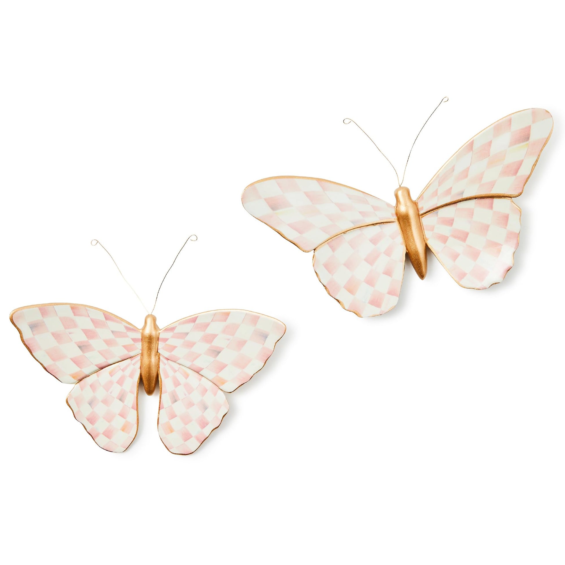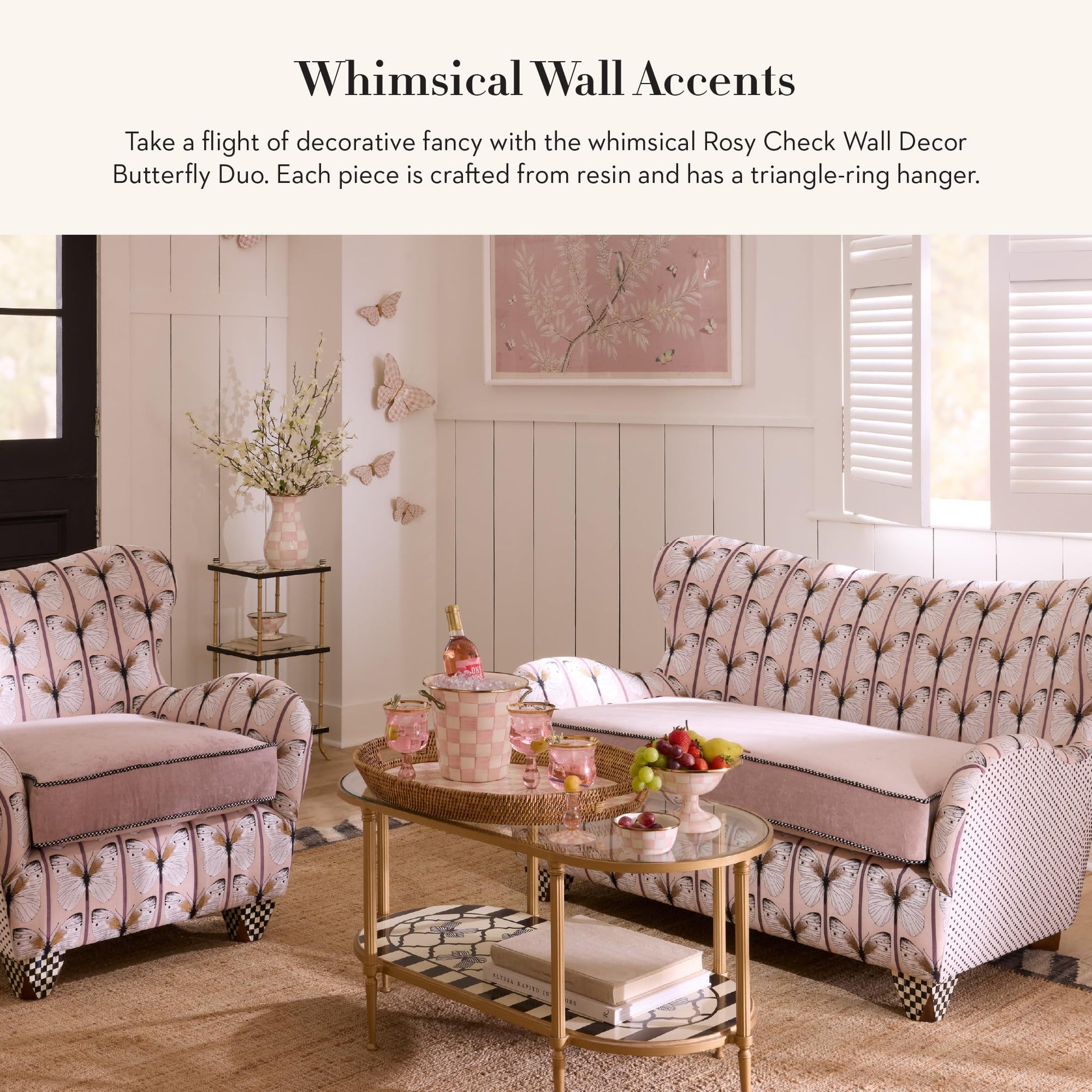 MACKENZIE-CHILDS Butterfly Duo, Hanging Butterfly Wall Decor, Black-and-White Courtly Check, Set of 2
