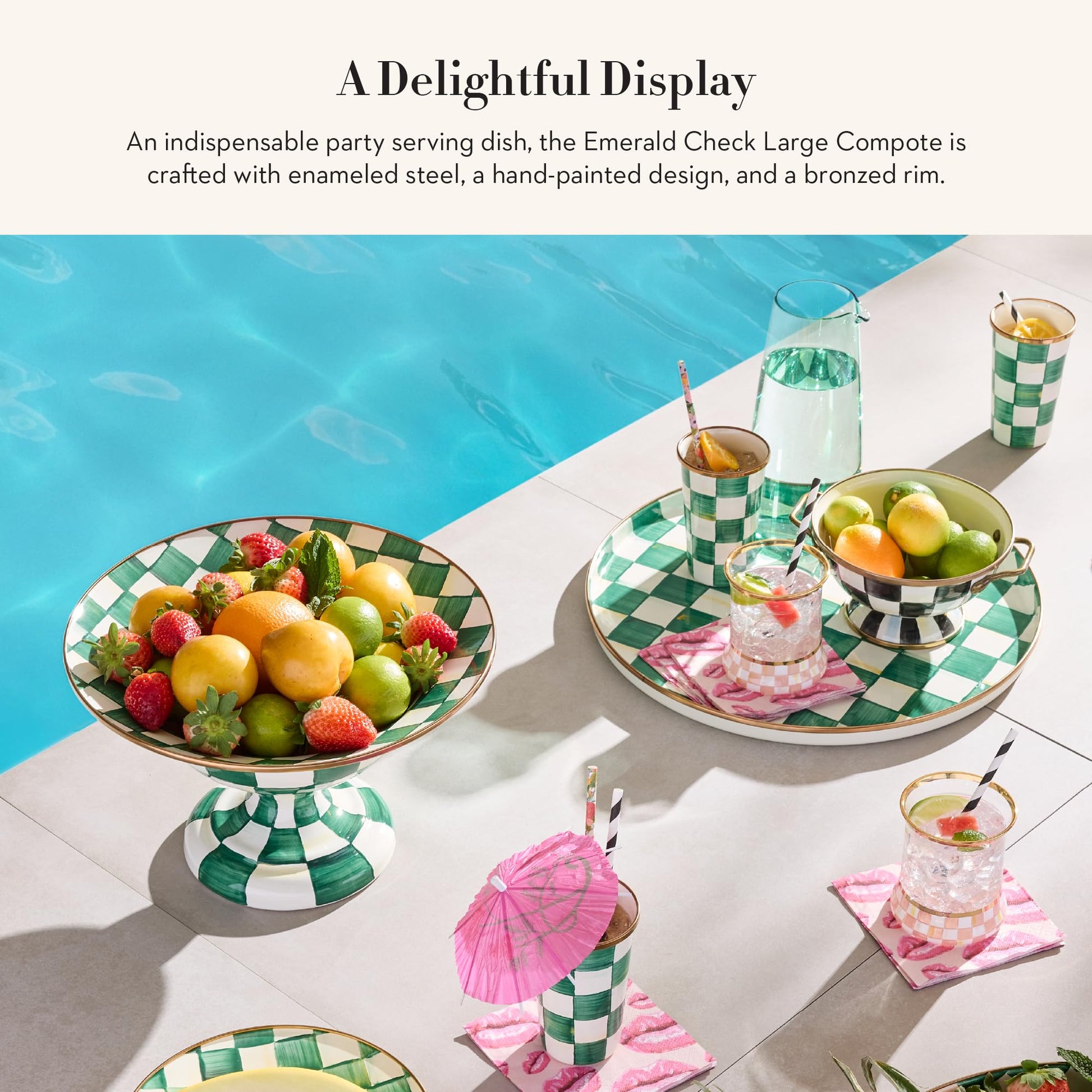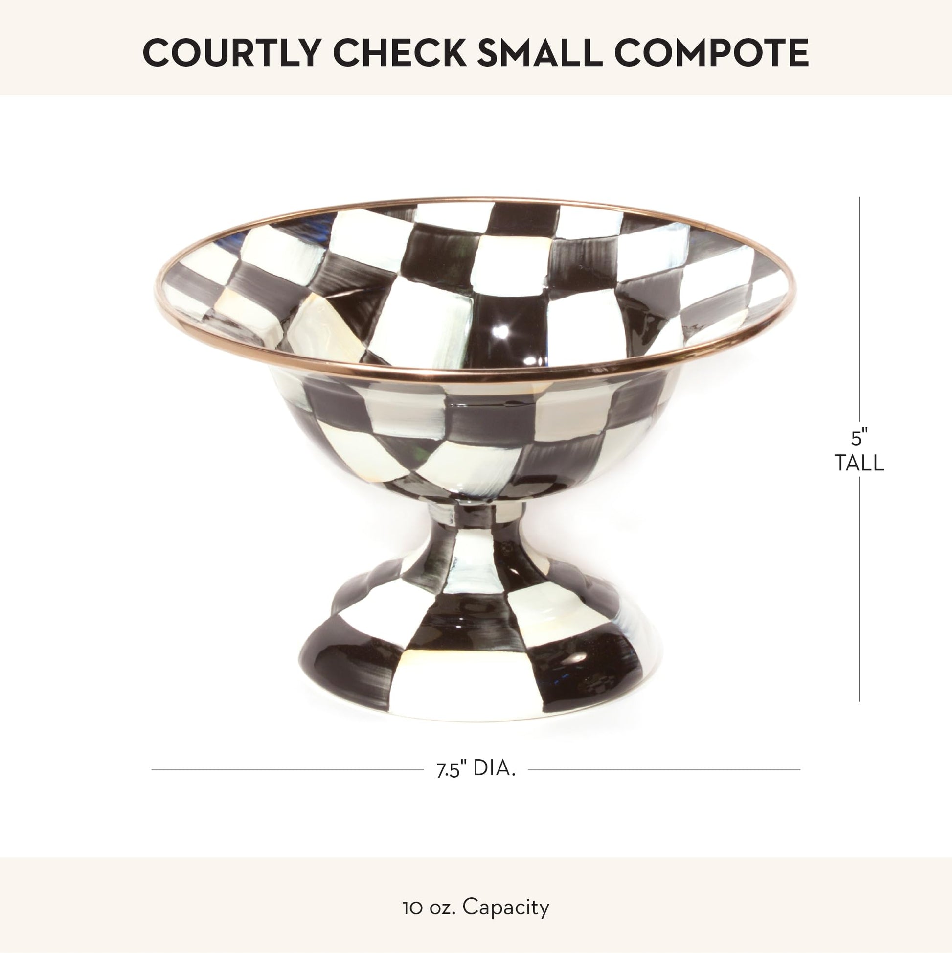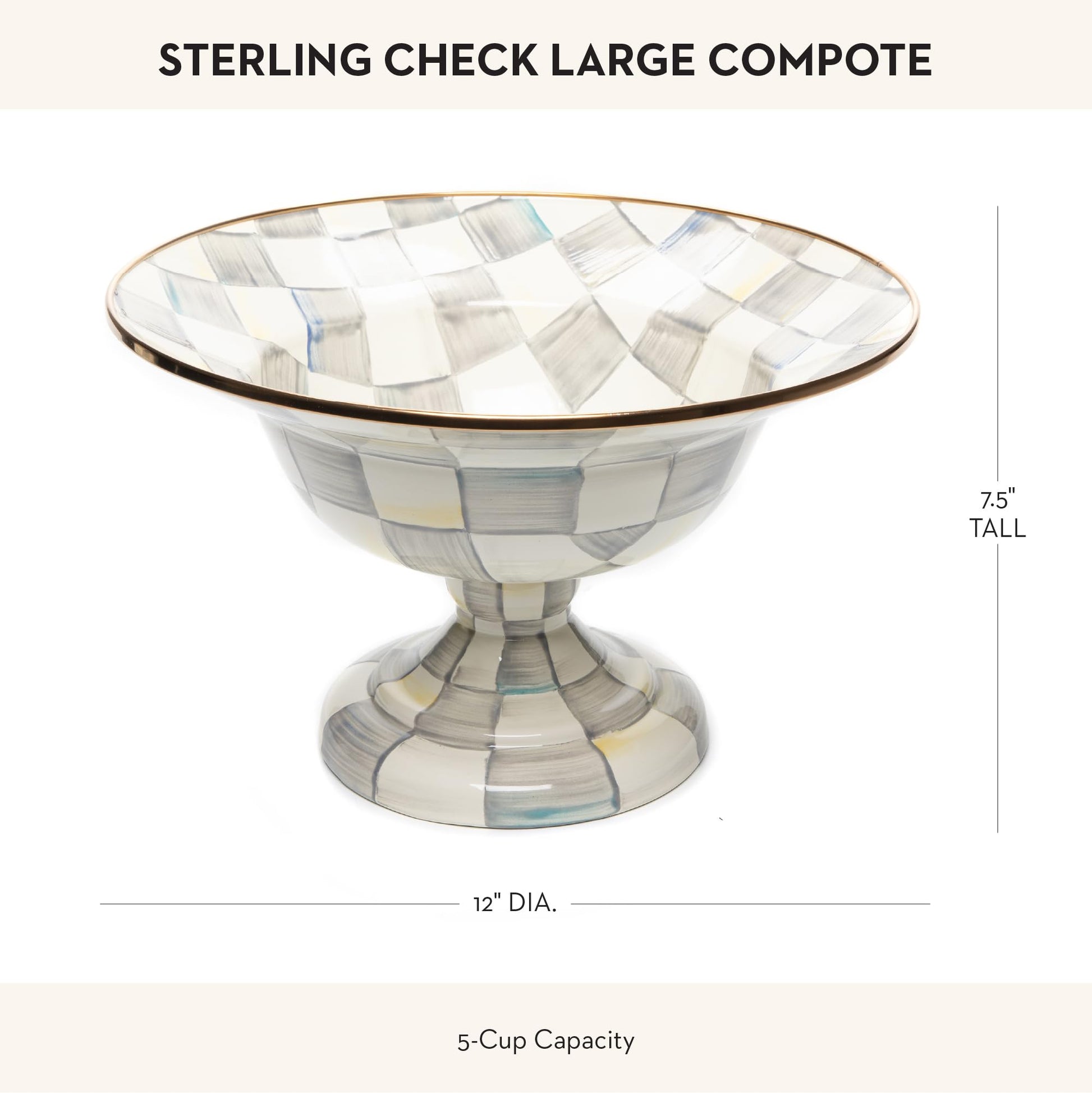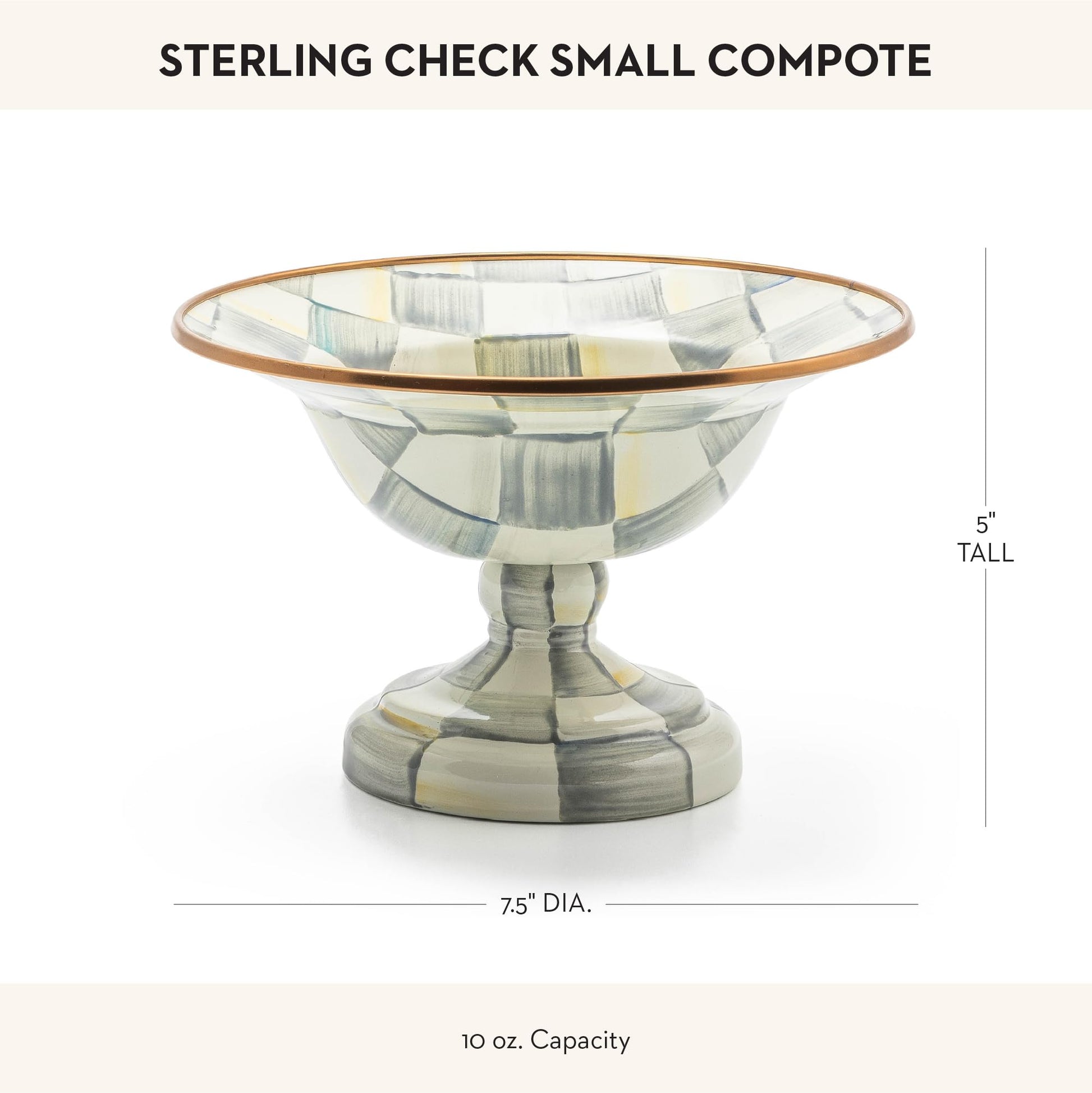 - ELEGANT SERVING ESSENTIAL: Great for serving sweets, the Mocha Check Enamel Compote is an elegant pedestal bowl for any dining table. It is decorated with hand-painted brown-and-white checks and features a steel underbody and a stainless-steel rim.