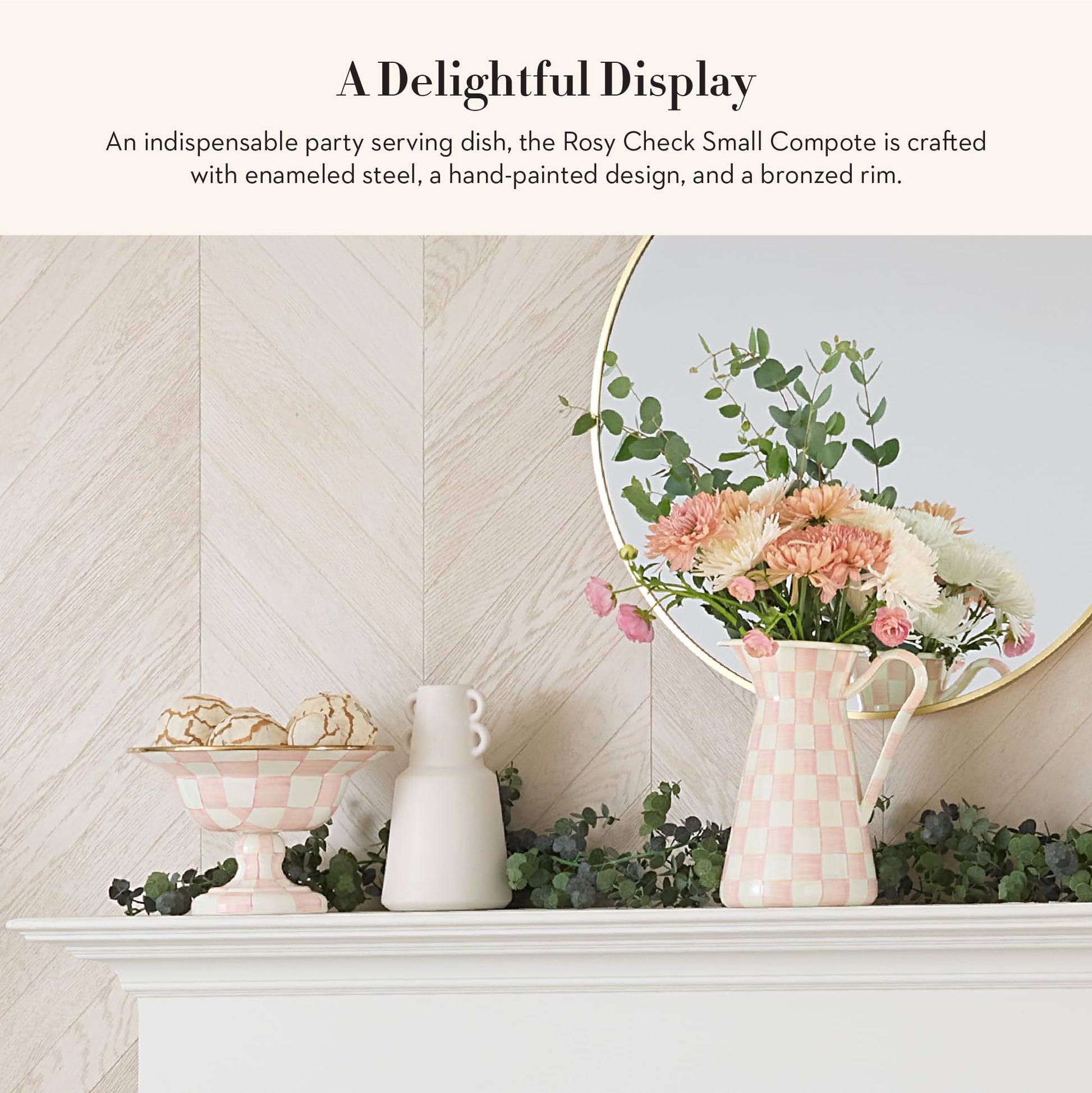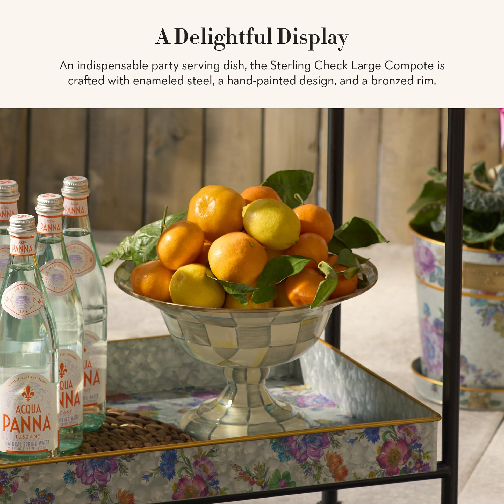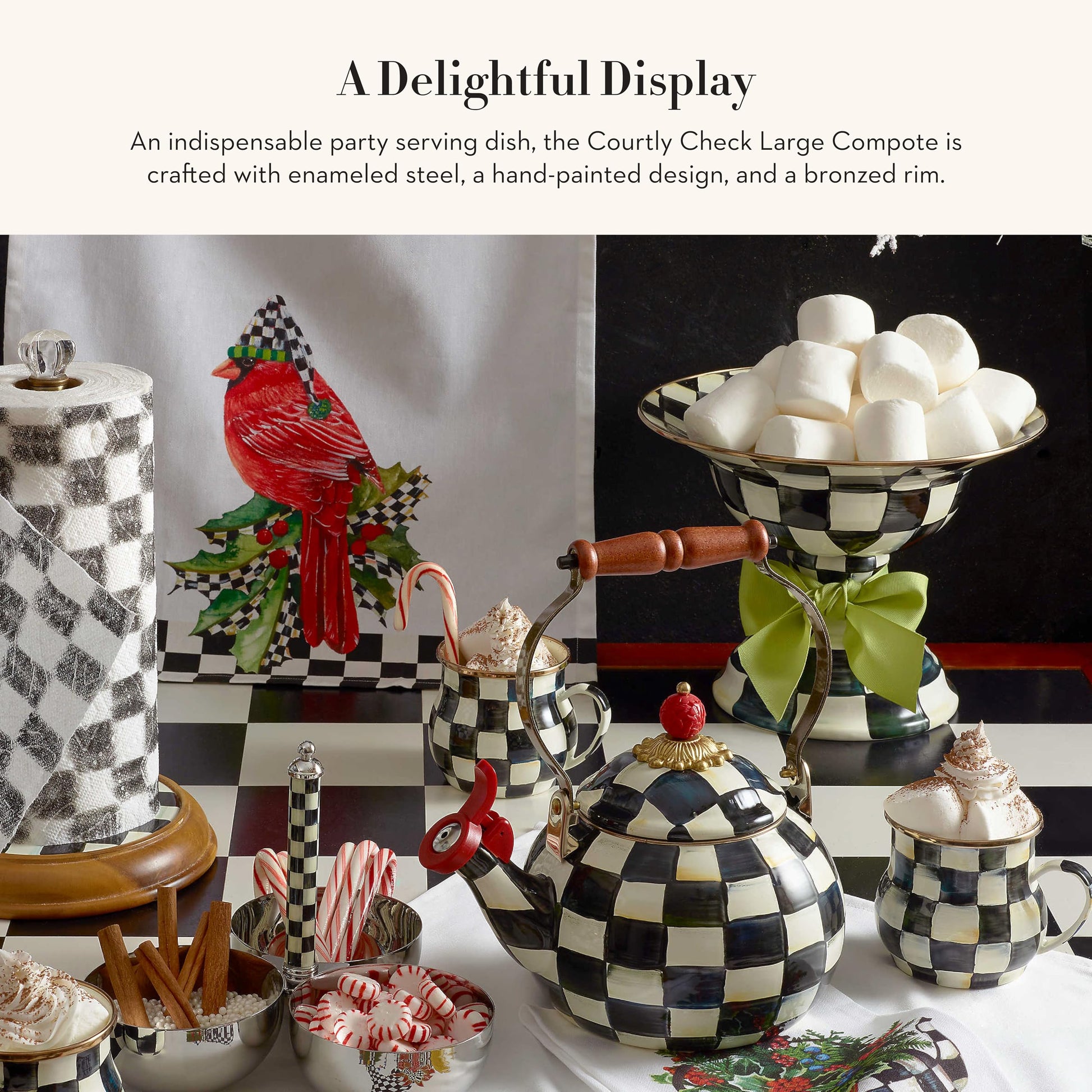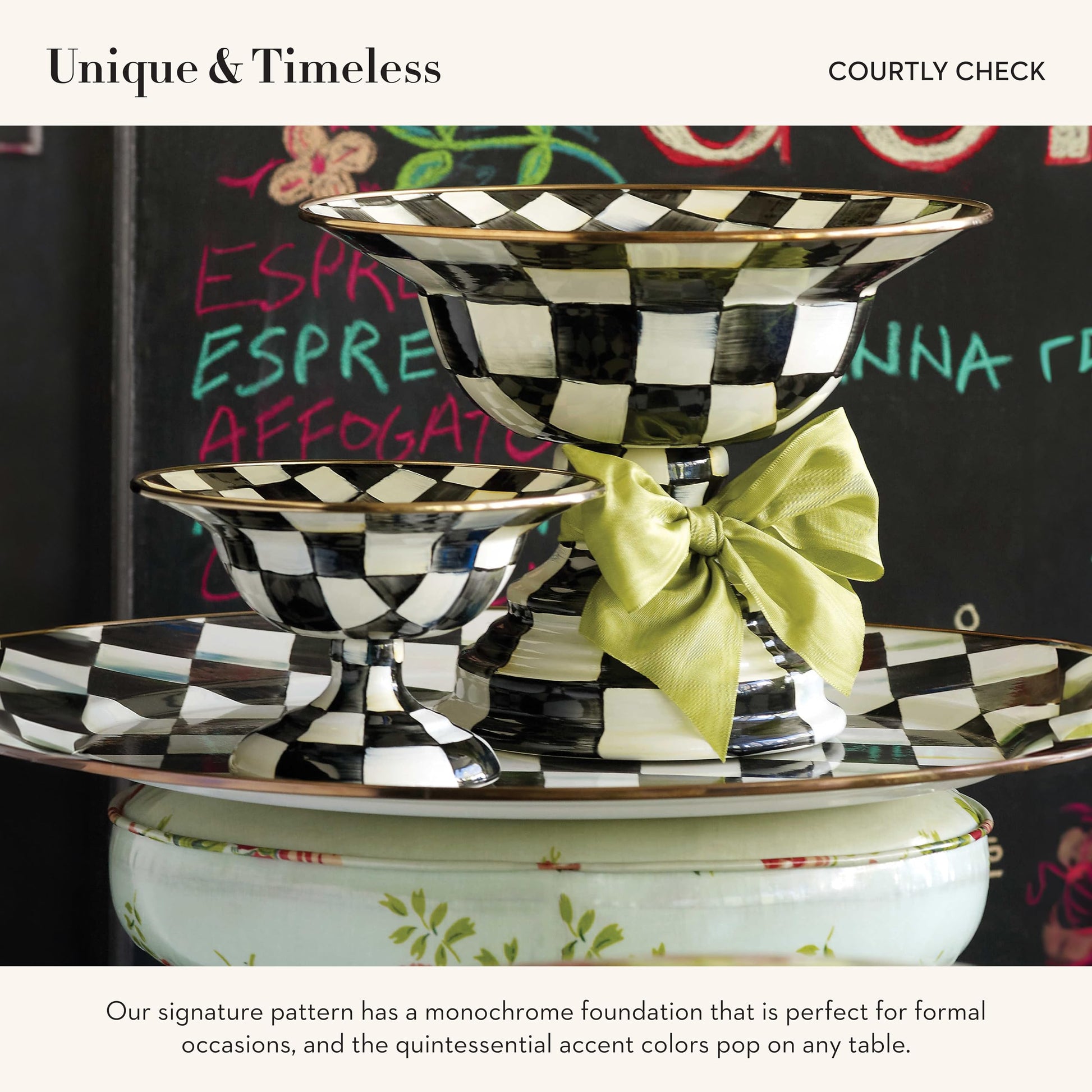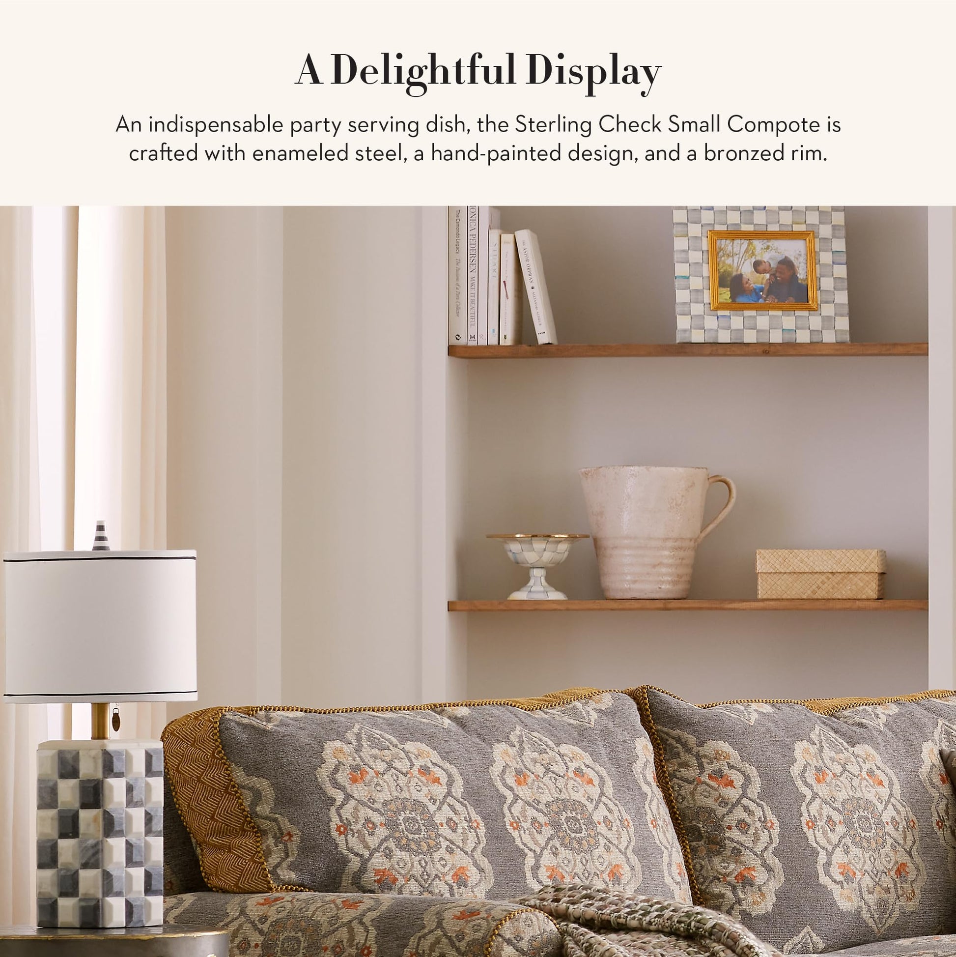 MACKENZIE-CHILDS Enamel Compote, Cute Enamel Pedestal Serving Dish or Decorative Bowl, Large, Brown-and-White Mocha Check