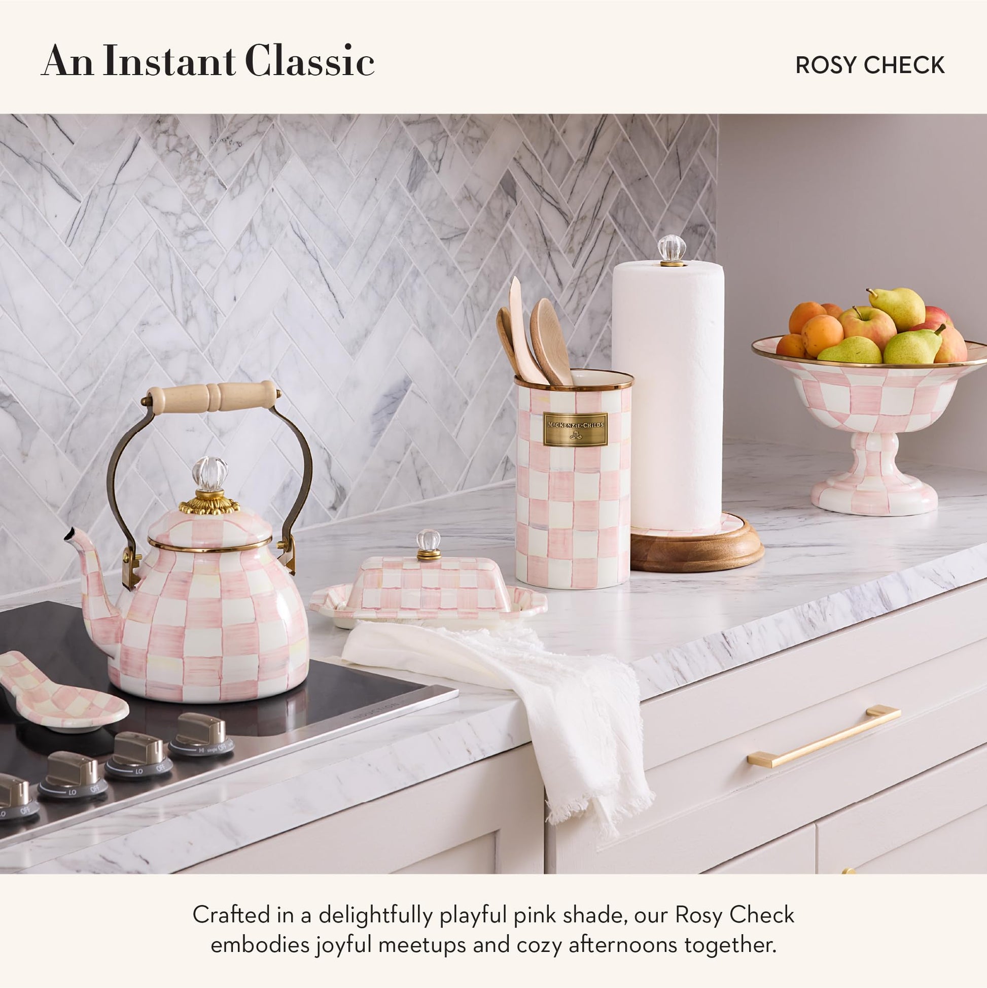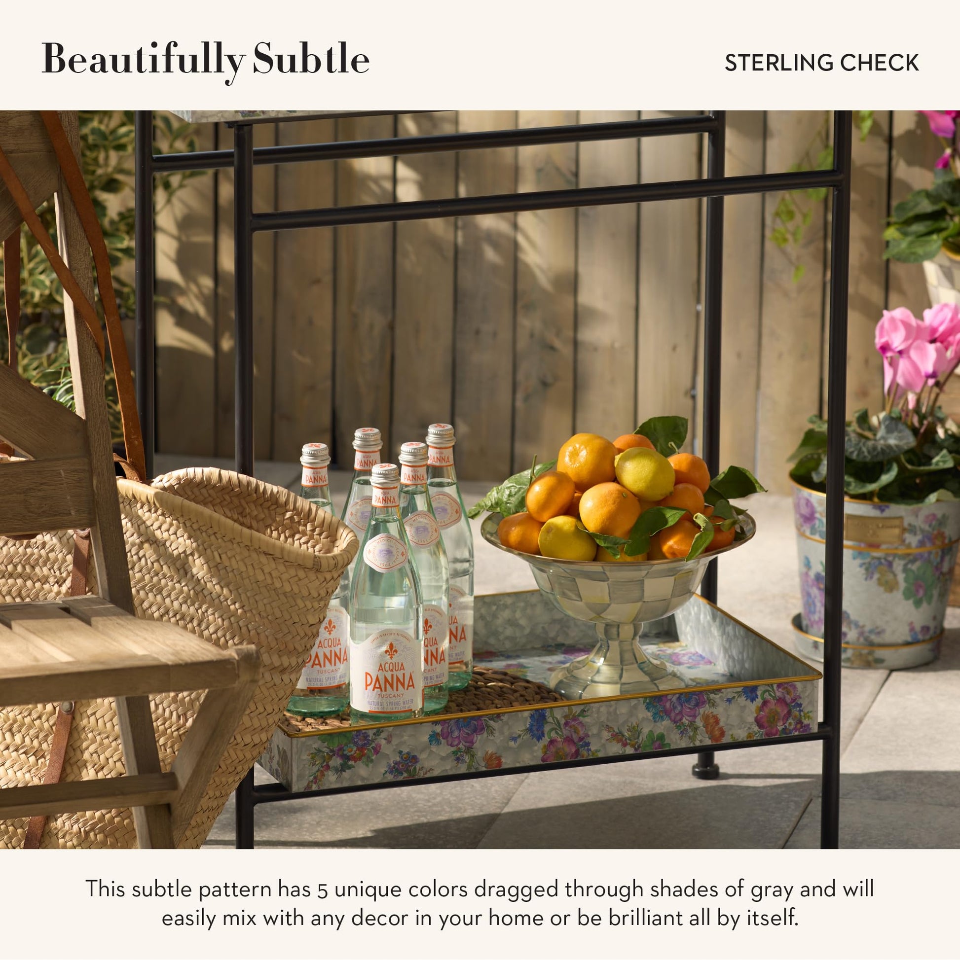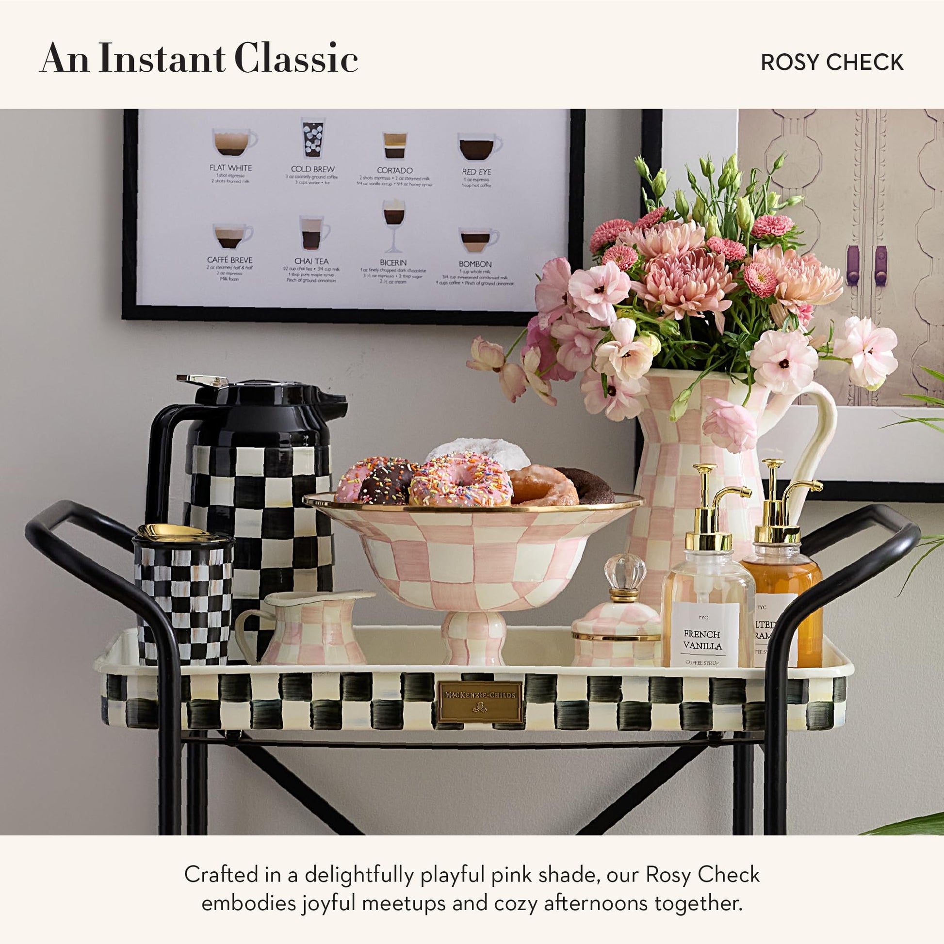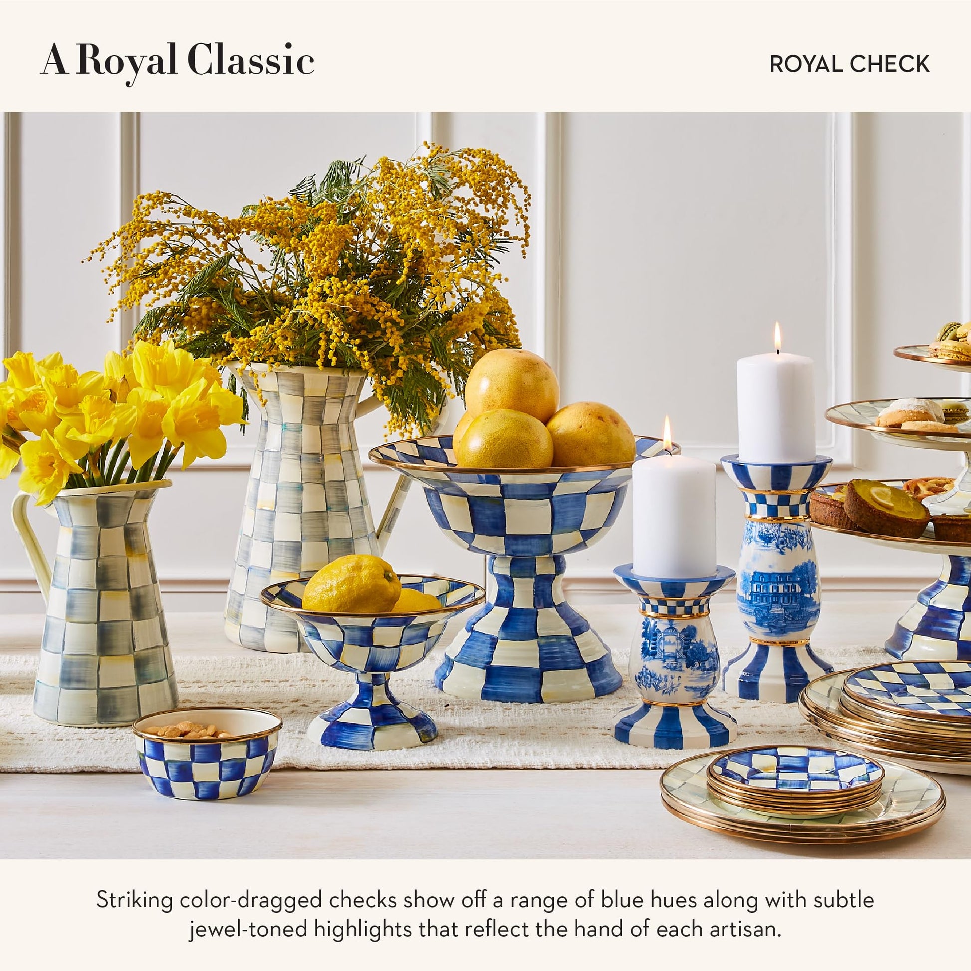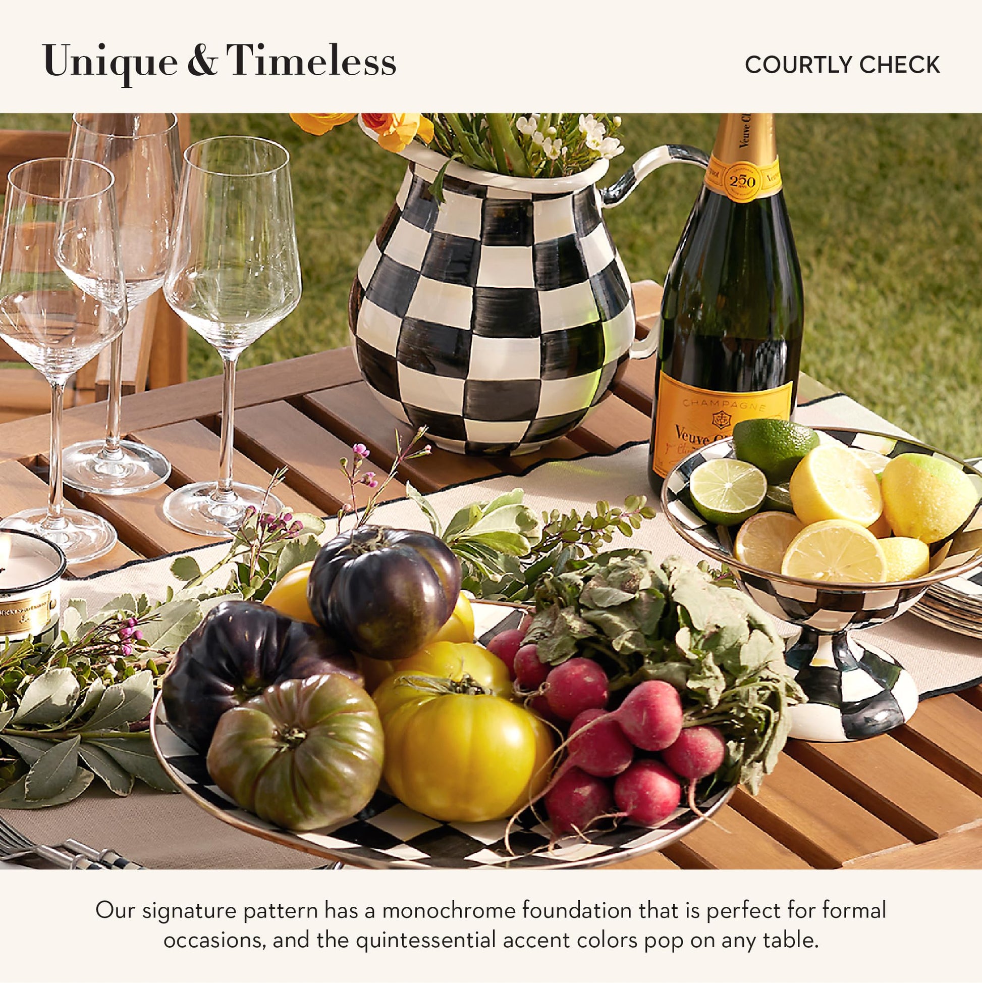 MACKENZIE-CHILDS Enamel Compote, Cute Enamel Pedestal Serving Dish or Decorative Bowl, Large, Brown-and-White Mocha Check