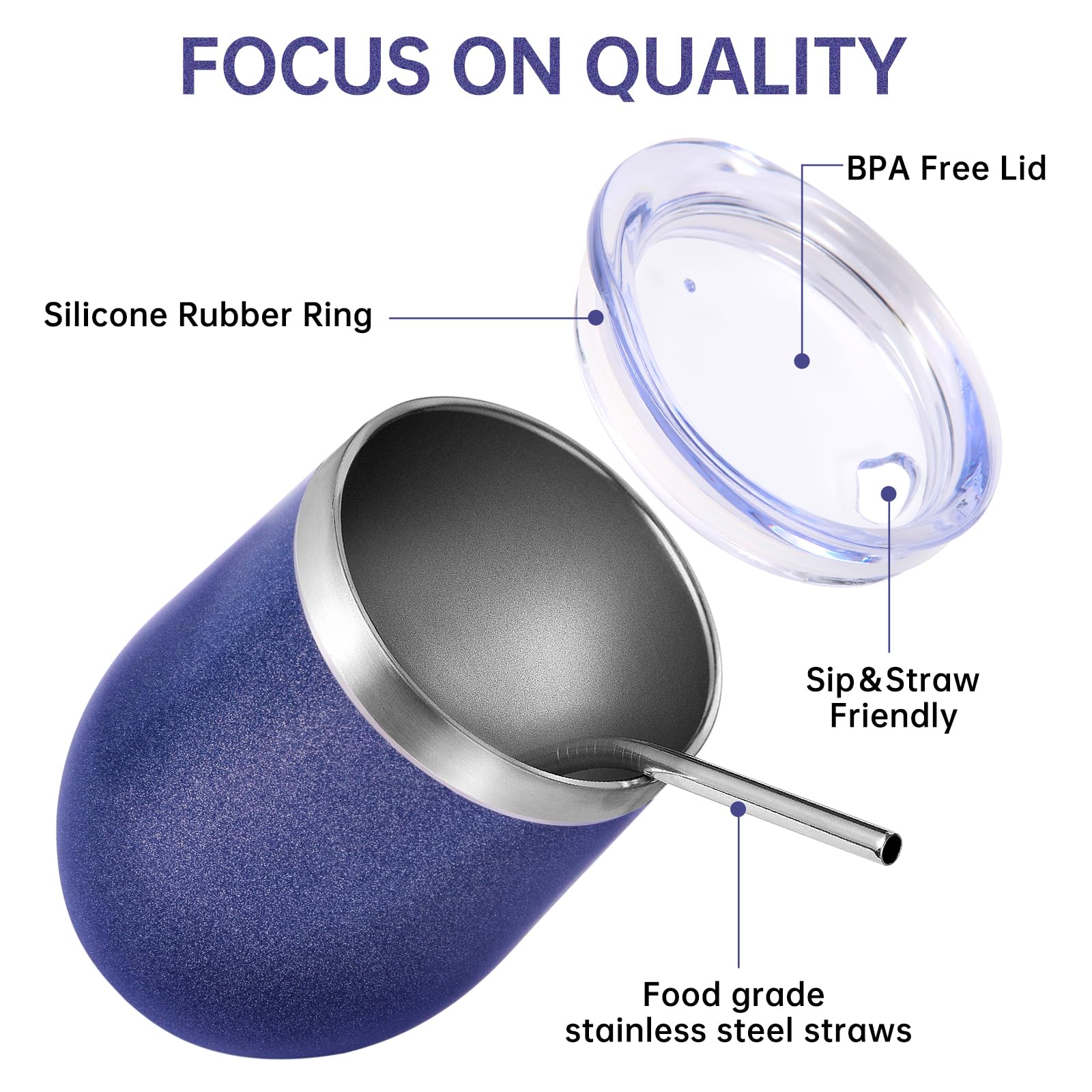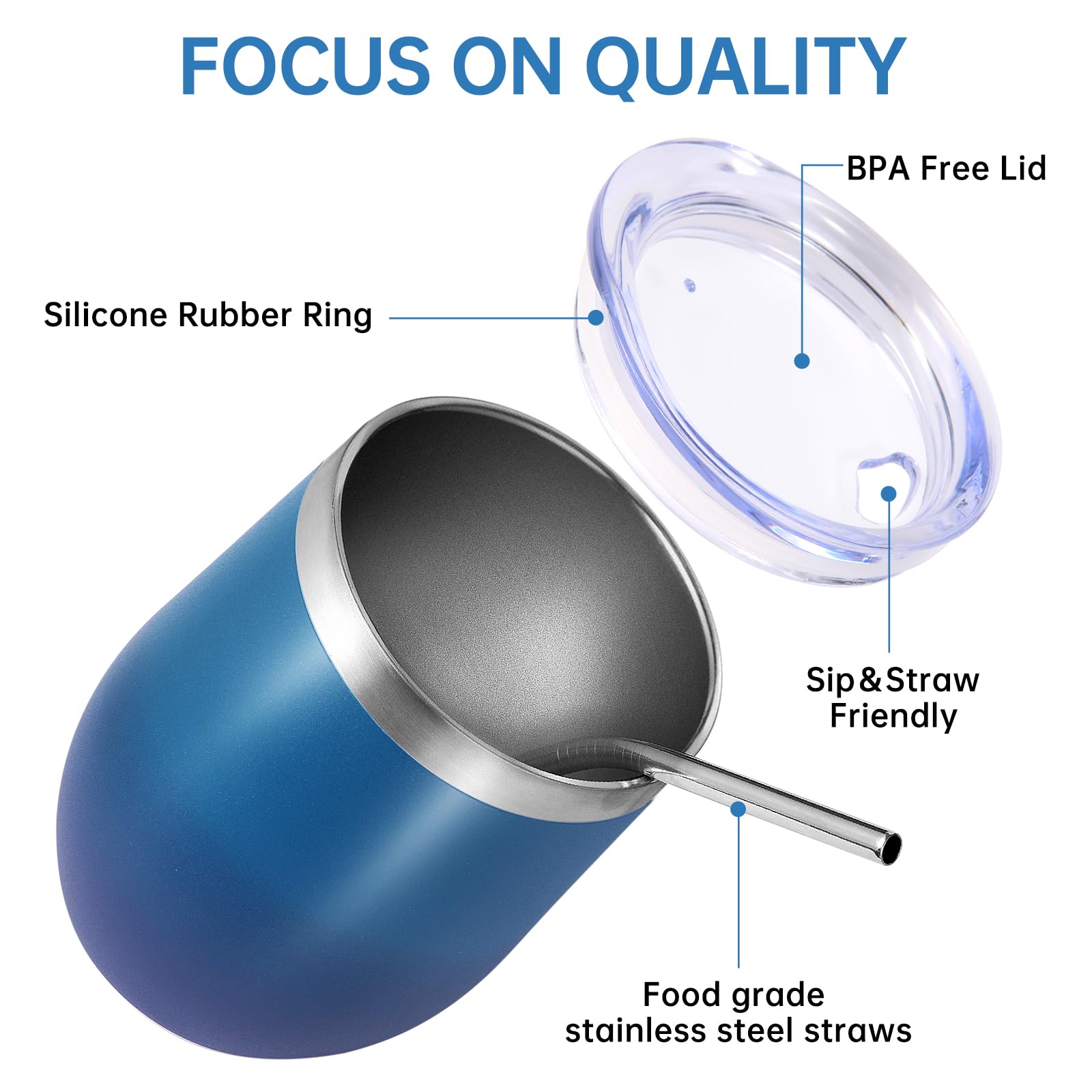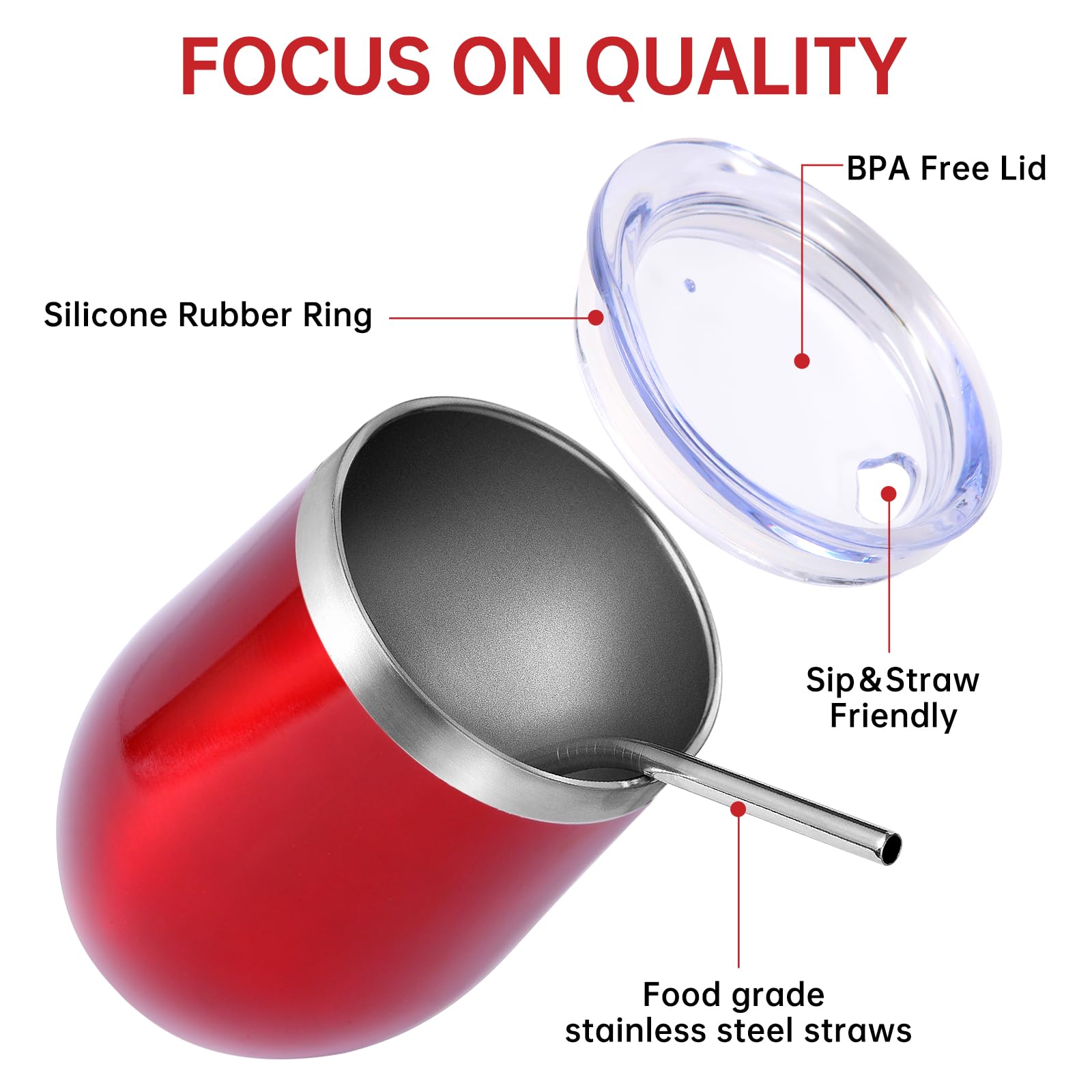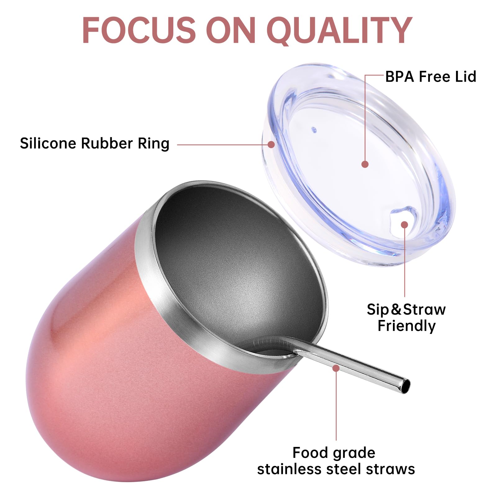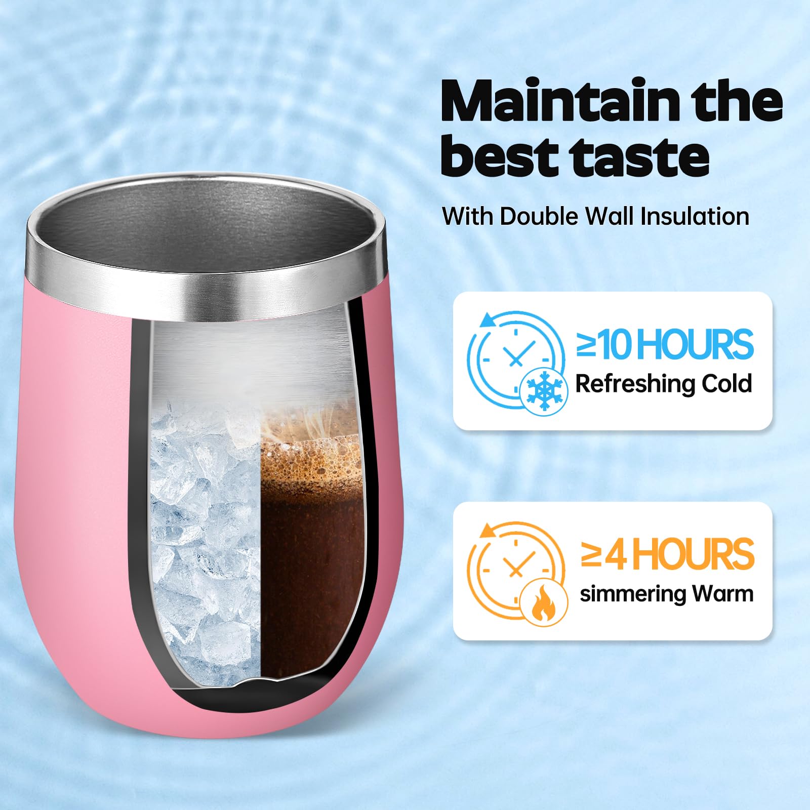 - 【Food-Grade 304 Stainless Steel & Powder Coated】 The double walled insulated wine cup is made of high-quality food grade 18/8 304 stainless steel,which is durable,rust free,lightweight,and easy to carry. The powder coating on the surface is both beautiful and practical,making the cup surface smooth and glossy like velvet. It has anti sweat function to effectively reduce fingerprint residue,Easy to clean.