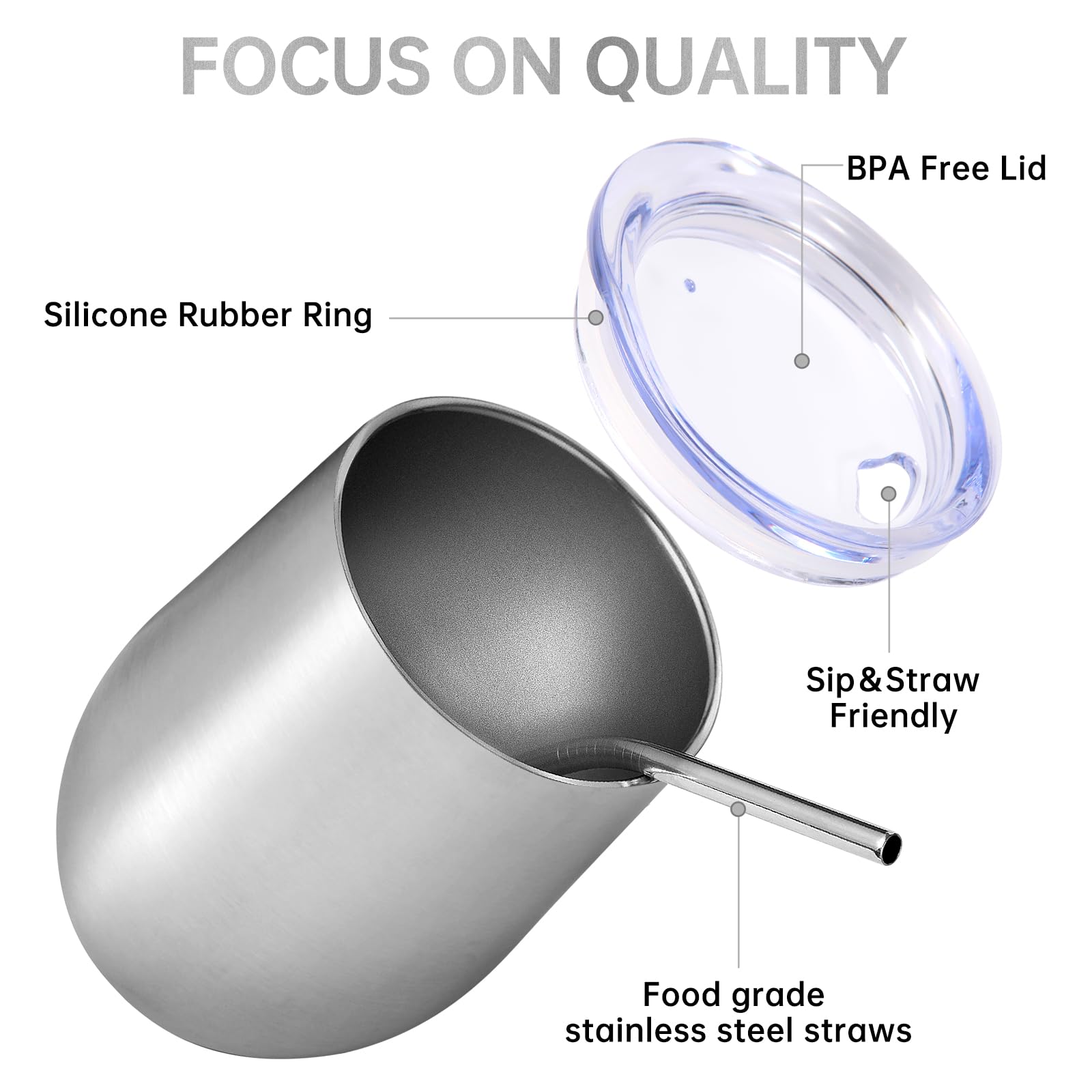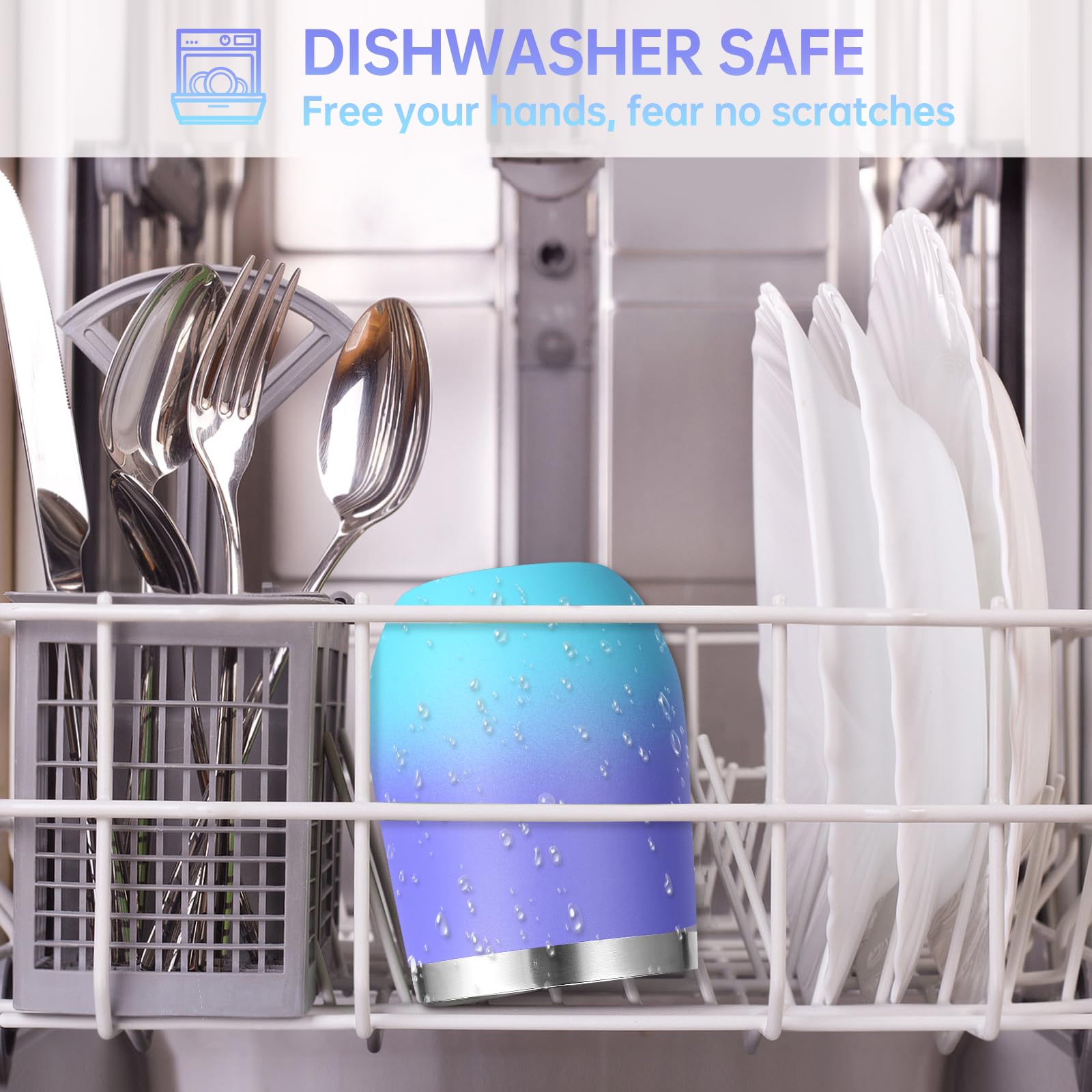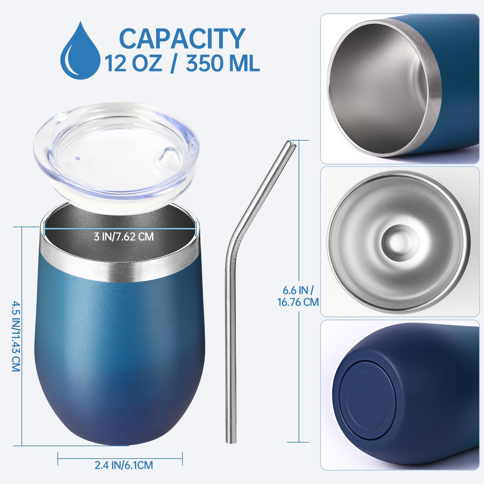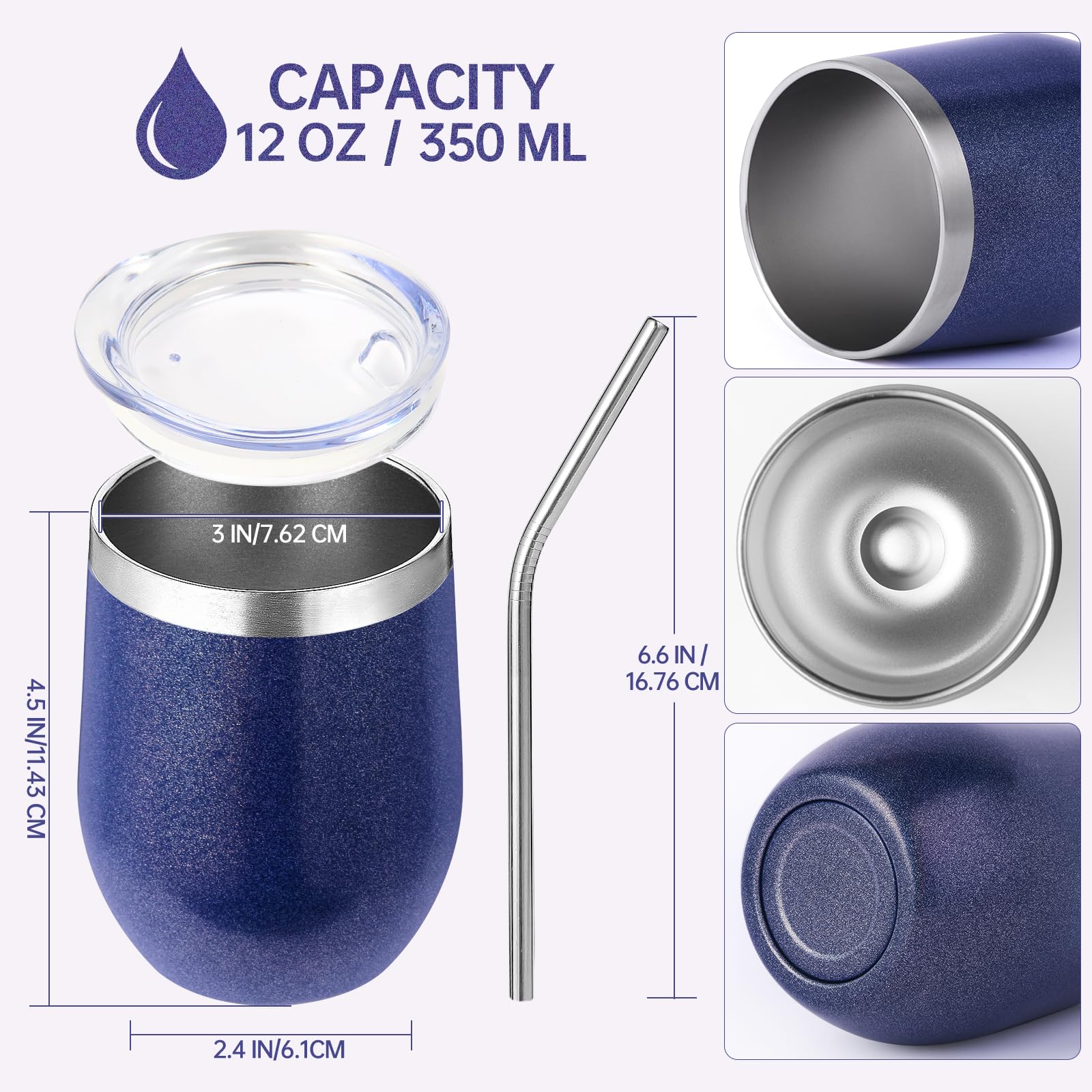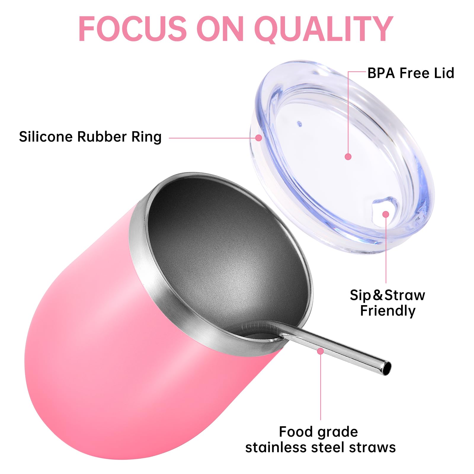 - 【Food-Grade 304 Stainless Steel & Powder Coated】 The double walled insulated wine cup is made of high-quality food grade 18/8 304 stainless steel,which is durable,rust free,lightweight,and easy to carry. The powder coating on the surface is both beautiful and practical,making the cup surface smooth and glossy like velvet. It has anti sweat function to effectively reduce fingerprint residue,Easy to clean.